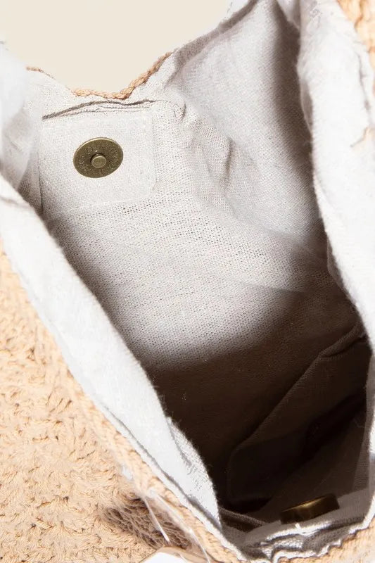 Fame Half Moon Straw Tote Bag
