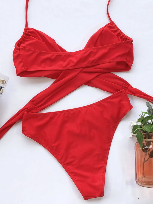 Glitter Halter Neck Strappy Two-Piece Bikini Set