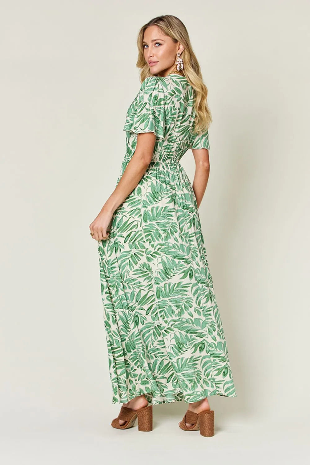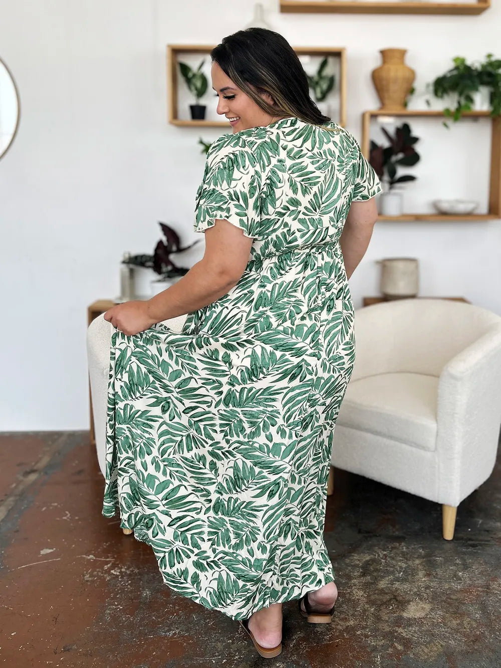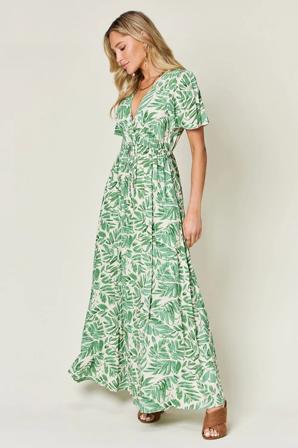 Double Take Full Size Printed Drawstring Short Sleeve Dress