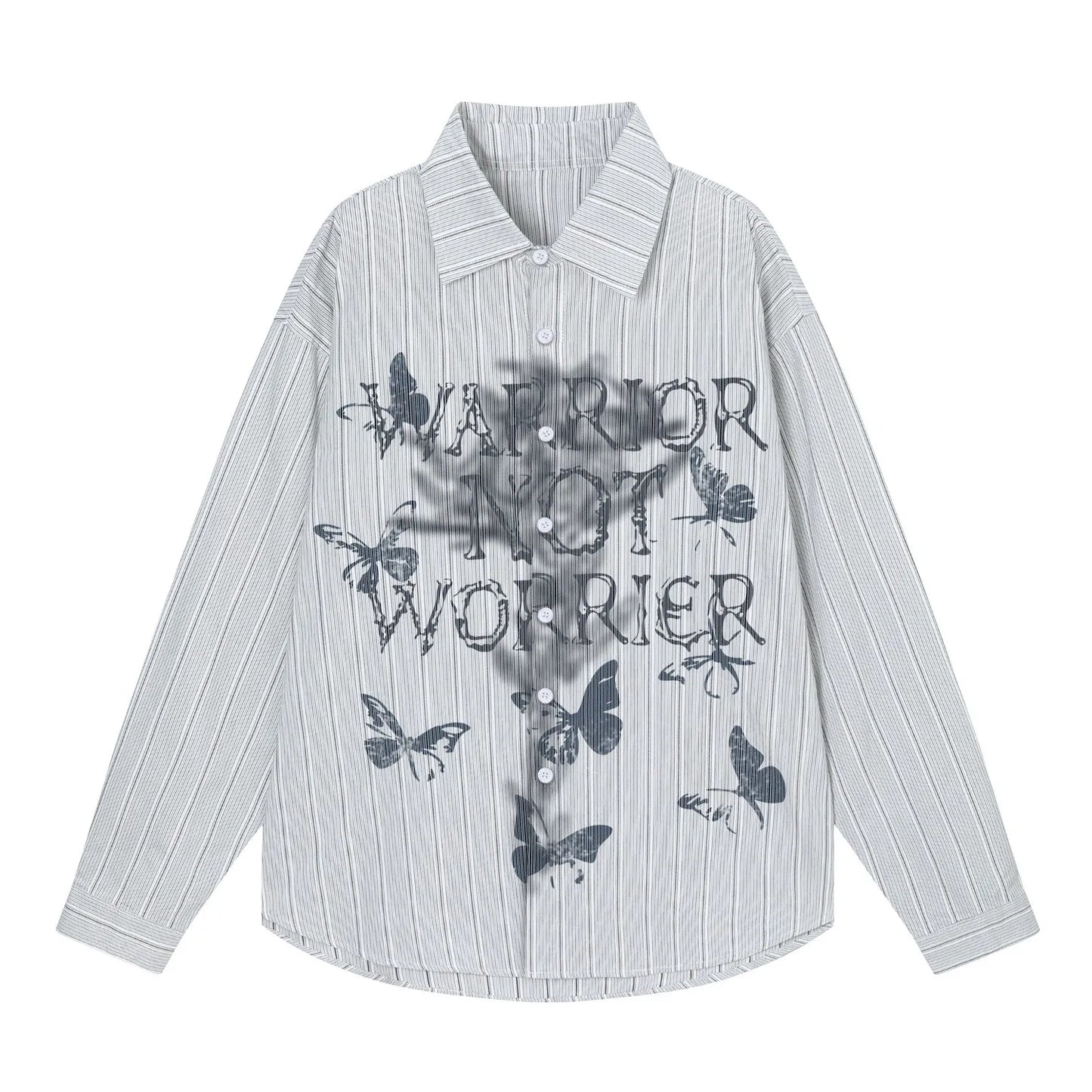 Men's Butterfly Print Striped Long Sleeve Casual Shirt