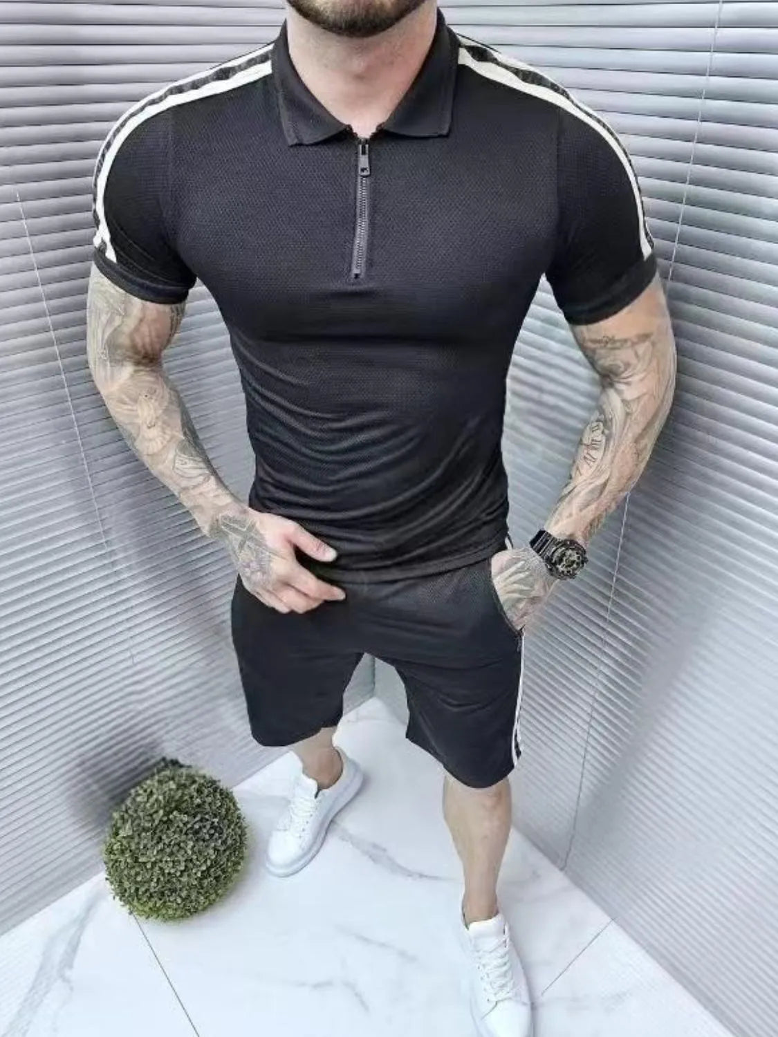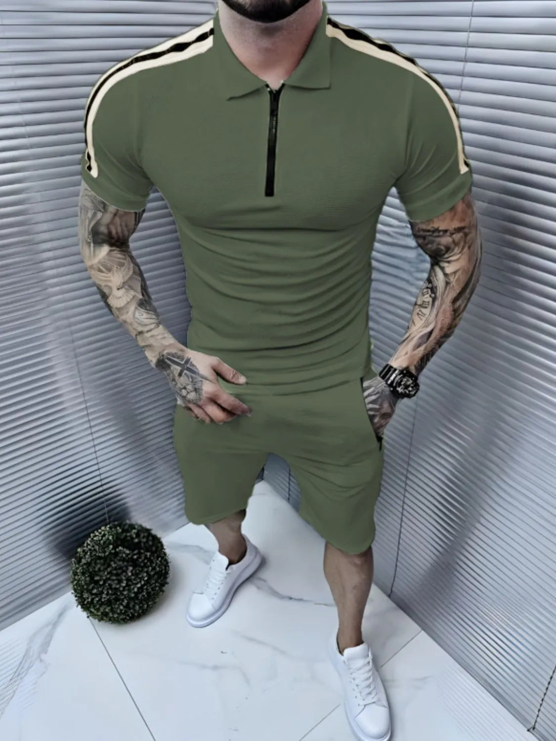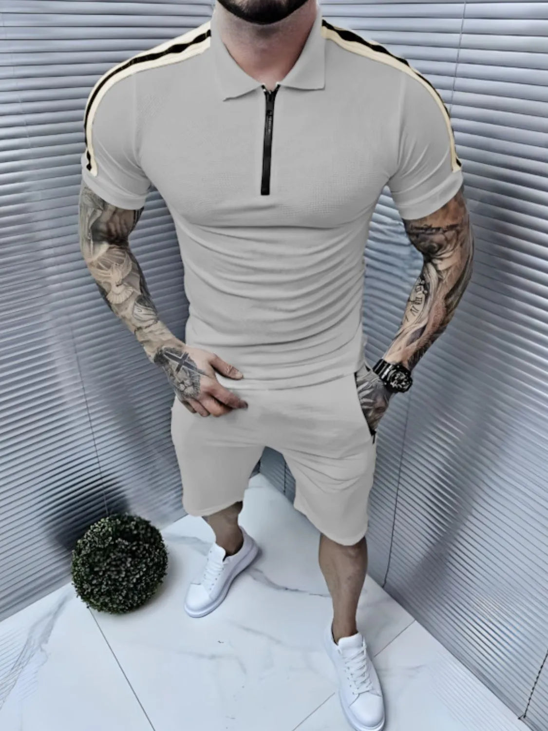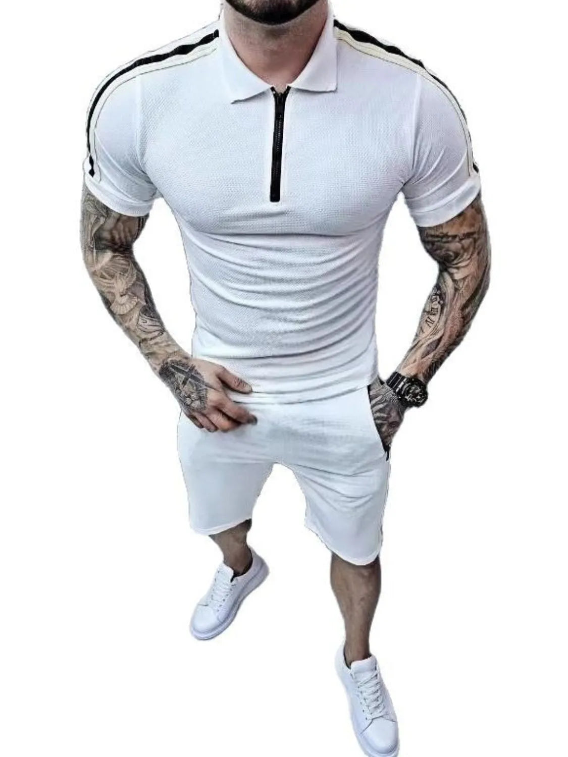 Men's Collared Neck Short Sleeve Top and Shorts Set