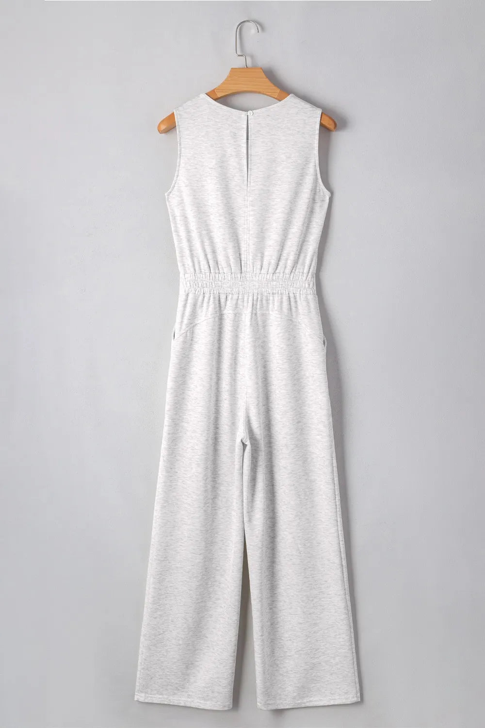 Solid Color Crew Neck Drawstring High Waist Sleeveless Jumpsuit